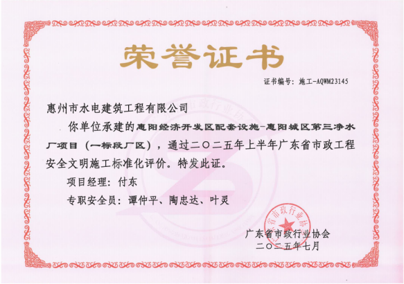 近日,由惠州水務(wù)集團(tuán)水電公司承建的惠陽(yáng)經(jīng)濟(jì)開(kāi)發(fā)區(qū)配套設(shè)施—惠陽(yáng)城區(qū)第三凈水廠項(xiàng)目(一標(biāo)段廠區(qū)),順利通過(guò)2025年上半年“廣東省市政工程安全文明施工標(biāo)準(zhǔn)化”評(píng)價(jià)。這一榮譽(yù)不僅是對(duì)市水電公司項(xiàng)目管理與施工水平的高度肯定,更是對(duì)他們始終堅(jiān)持高標(biāo)準(zhǔn)、嚴(yán)要求推進(jìn)安全文明施工的生動(dòng)詮釋,為行業(yè)樹(shù)立了可借鑒、可推廣的標(biāo)桿典范。
